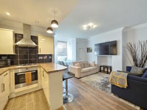 This Trendy One Bedroom Apartment in London offers a modern and comfortable stay with a garden, terrace, and free WiFi.