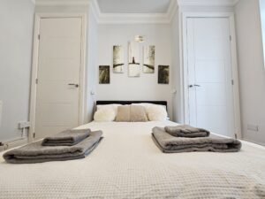 The apartment features a fully equipped kitchen, washing machine, bath, and garden views, along with amenities such as a dining table, sofa bed, refrigerator, microwave, TV, private entrance, and parquet floors. Conveniently located near Olympia Exhibition Centre and just a short distance from Stamford Bridge, the Natural History Museum, and Harrods, it also provides easy access to Heathrow Airport. Guests can enjoy local water sports and boating nearby.