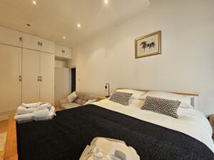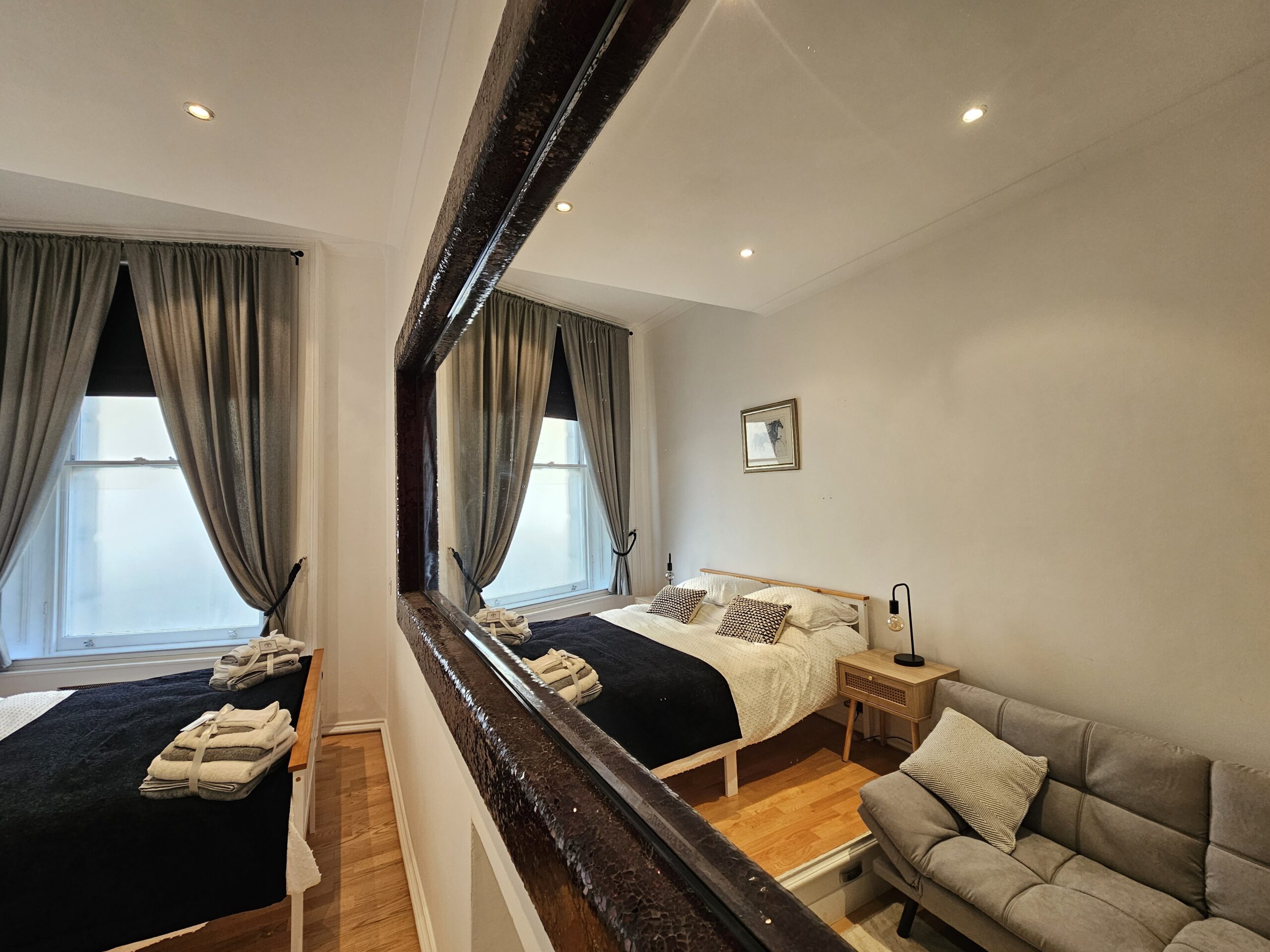 City Nest 2 Bedroom Apartment in Paddington provides a comfortable ground-floor stay featuring two bedrooms, a spacious living room with a sofa bed, and parquet floors.